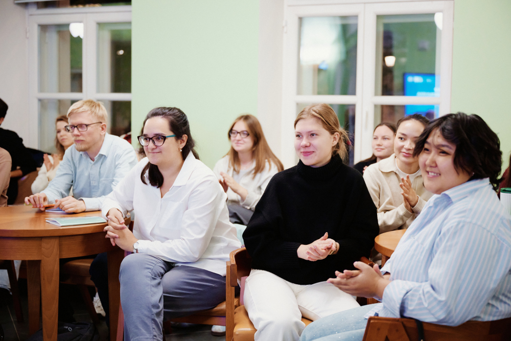 К участникам встречи обратились Андрей Кожанов, директор Центра академического развития студентов, и Кристина Туренко, менеджер Центра научной интеграции. Они отметили важность начала учебного года как точки нового старта и пригласили молодых ученых включиться в интерактивный разговор о том, как сохранять мотивацию в академической работе.
